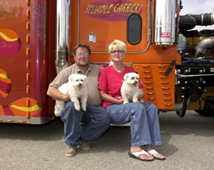 Donnie turned the folks at Reliable down the first time they offered him a job - he had a red truck at the time and didn’t want to paint it orange (the color of the Reliable fleet). But now both he and Diana love the color. “It’s easy to find the truck in a crowded parking lot,” said Diana with a smile. Reliable currently has around 300 trucks, mostly owner operators, and hauls specialty vehicles in all 48 states and Canada. Donnie & Diana, along with their two little dogs named Petie and Jessie, pull a drop-deck and specialize in big vehicles - like buses, big trucks, military vehicles and other over-sized pieces of equipment. They started running the incredible 2002 Pete 379 featured on this month’s cover in November of 2001.