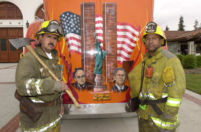 One of the good things to come out of all this is American’s new-found devotion for their public servants. When the towers collapsed, they took 343 members of the New York Fire Department, 37 Port Authority police, and 23 NYPD officers with them. Our cover this month is 10-4’s tribute to the fallen firefighters - we could think of no better way to present this rig to our readers than to flank it with two of our finest from Los Angeles City Fire Station 61, Vince Jenkins and Martin Marquez.