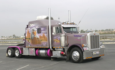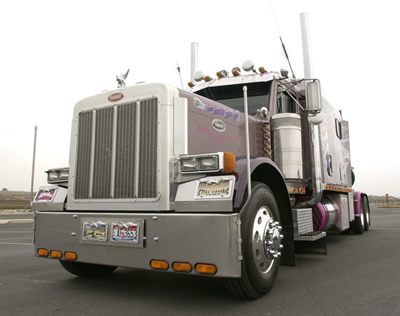 Their truck, a Dusty Rose colored 1997 Pete 379 they call “In the Misty Moonlight”,