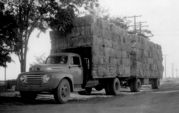 he decided to buy a truck and start hauling hay. His first truck was a gasoline-powered