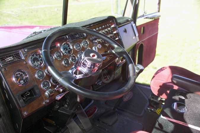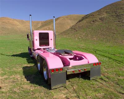 Usually when you see a pink truck on the road, you almost automatically assume that a lady is behind the wheel. But not so with this flashy pink and magenta Peterbilt. Nope. Take a peek inside this rig as you pass by and you’ll see a gruff, fifty-year-old man with thirty years of driving under his belt behind the wheel. But, after a few seconds of gazing, you forget about missing the opportunity to check out some good-looking female trucker and are quickly drawn in to the beauty of Bob Smithson’s ride - bright pink and all!