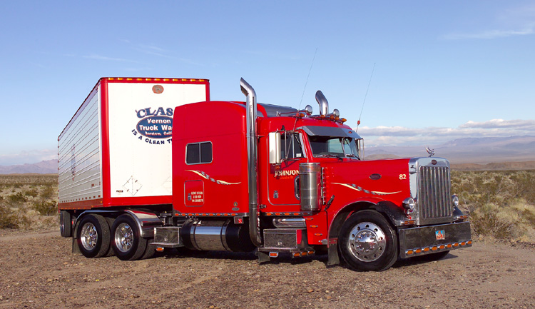 His super-clean Peterbilt is a common sight along Interstate 15 between