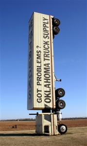that stands in the field next to the shop. The sign is a real tractor-trailer