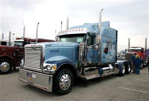Debbie Brown’s “American Thunder” Harley-themed Freightliner. Both of