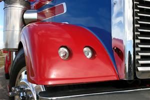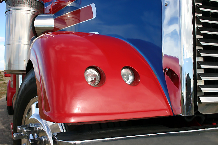 red paint, as well as WTI fiberglass fenders to match the truck.
