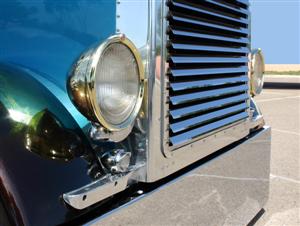 unique truck features a 22-inch bumper, a louvered grille and big, round,