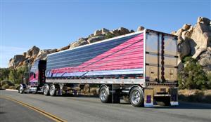 the truck, Richard pulls a matching 1996 Utility reefer trailer that is