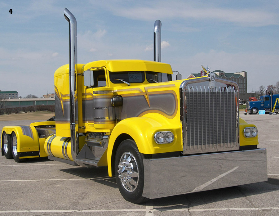 1st Jason Arneson of Janesville, WI (Five O’Clock Somewhere). COMBO LIGHTS: Dale & Tamara Johnson of Hemingway, SC (Finger Lickin’ Good); 2nd Paul Stanchio of Port Washington, NY; 3rd Phillip Clayton of Scottsboro, AL. BOBTAIL LIMITED MILEAGE: 1st Bill & Marie Sandvik of Valley Center, CA; 2nd Rusty Wyrick & Tina Lomax of Mansfield, OH (French Quarters); 3rd Gary Gallopo of Keyport, NJ (Bride of the Beast); 4th Robert Gentry of Fulda, IN; 5th Carl Oxendine of Martinsville, VA. BEST PETERBILT AWARDS: 1st Bill & Marie Sandvik of Valley Center, CA; 2nd Brad Caton of Hampton, MN (Joker Went Wild); 3rd Jeremy Hassevort of Hamilton, MI. COMBO LIMITED MILEAGE: 1st Clint Dicks of Lake City, FL (Freshly Squeezed); 2nd Chuck Prigge of Valley Center, CA (Kaotic); 3rd Ron Baird of Thornton, IN (Hoffman’s Hot Rod); 4th Chad & Brad Sand of Royalton, MN; 5th Richie Acosta of North Bergen, NJ (Project 350). DIESEL DAVE’S PICK OF THE LITTER: Ron & Jan Huey. BEST OF SHOW BOBTAIL: Harvey & Karen Zander of St. Louis Park, MN – 2001 Blue with Murals International 9900 (Icy Blue 2). BEST OF SHOW COMBO: Jerry Beaudoin of Southington, CT – 2007 Black Peterbilt 379 with 2007 J & J Dump (SRS). PEOPLE’S CHOICE: Gary Gallopo of Keyport, NJ – 1980 Yellow Kenworth W900L (Bride of the Beast). BIG-RIG BUILD-OFF CHALLENGERS: Jeff Botelho of Custom Image Motors in Los Banos, CA; Phil Langevin of Valley Custom Truck in Carleton Place, Ontario, Canada; Clint Moore of Kansas City Peterbilt in Kansas City, MO; Steve VanZytveld of Ridin’ High Inc. in Grand Rapids, MI. 3RD ANNUAL BIG-RIG BUILD-OFF CHAMPION: Jim & Michael Raines of S & J Truck Sales in Fort Wayne, IN (Rock Bottom). Copyright