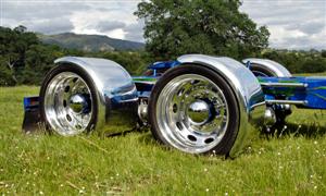 frame over each of the rear wheels. All of the pieces for the 4-link setup,