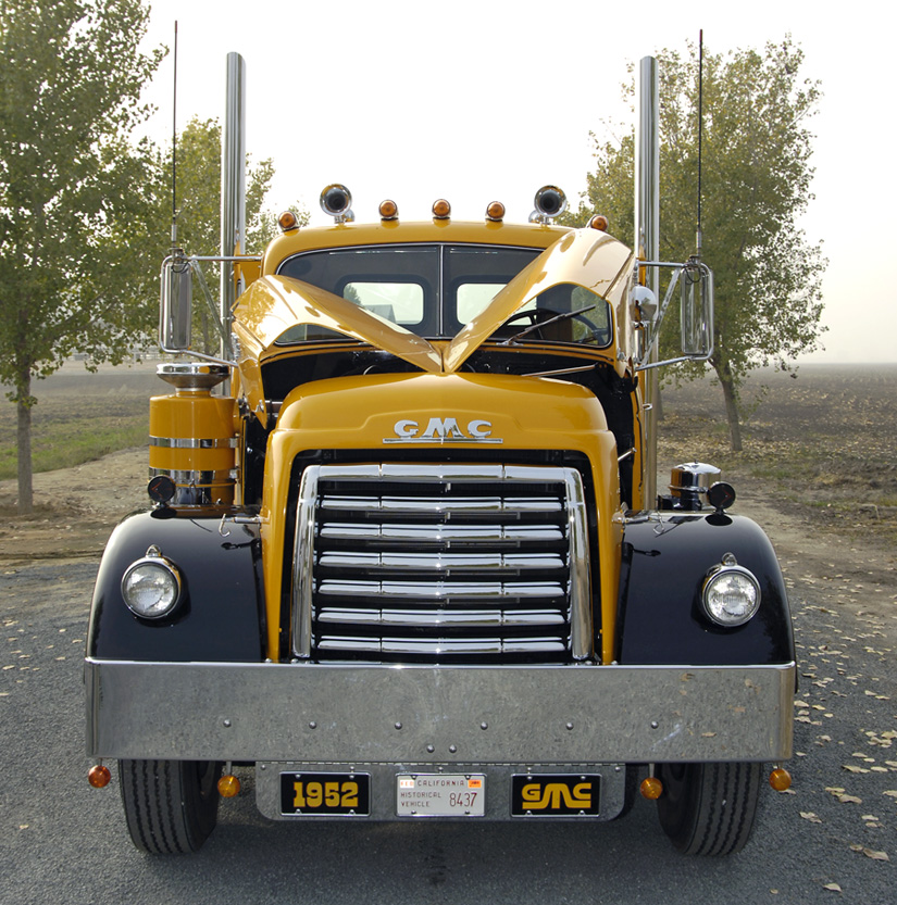 When Pete was just a kid, growing up on the dairy in Artesia, he had two uncles that were in the hay business that drove GMC trucks. Pete always loved the sound of those trucks when they came to deliver hay to the dairy. This is probably why he later bought one for himself. Pete’s “Jimmy” (as they are commonly called) is a 1952 Series 900 tractor with an inline 6-71 Detroit Diesel engine and a 5+3 transmission. When Pete bought the truck from a friend named Phil Troost in the late 1980s, it was a partially-restored 2-axle rig. The cab and interior had been restored and the exterior had been painted, but that was about it. In fact, the school bus yellow and black paint you see on it today is over twenty years old, and it still looks brand new.