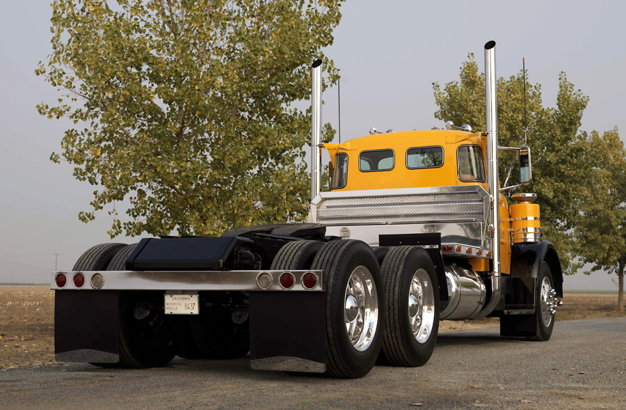 Once Pete got the truck, he took it to John Bos Welding in Chino, California and had the frame stretched out to 230” and added a third axle. After the frame was extended, the rails were reskinned with new sleeves. Pete then had a custom polished aluminum drom deck made and installed behind the cab, added some extra chrome, lights and a C.B. radio, and then had the original gauges restored. With all the extra lights, Pete had to install an alternator to run them (back then, trucks just had generators). Later, he added air conditioning for more comfort when driving to truck shows.