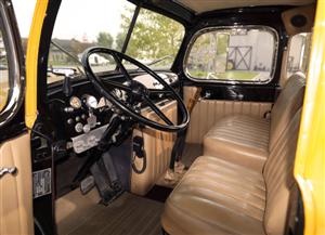 Once they got the truck back to the shop, they pulled the motor and found that the block was cracked, so they replaced it. The new engine upped the horsepower from 218 to 233 – which doesn’t sound like much of an improvement, but Yahpy sure could feel the difference. At this time, they also installed a Jake brake, cleaned up the firewall, and dressed it up under the hood with some chrome and fresh paint. Now, the “Jimmy” runs as good as she looks.