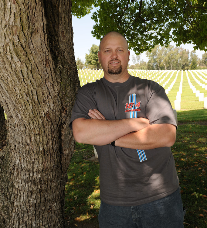 Shortly after that show in Dallas, Sean’s life took another turn. At the time, he was hauling cattle under his new company name, Veterans Express, and had a black Peterbilt called “Fallen Heroes” to commemorate his fallen friend Sgt. Barry K. Meza. On the back of the sleeper, Sean put “Roll Call” and began adding the names of every soldier killed in Iraq. Things were going great until one day, while loading some cattle, a steer got loose and trampled Sean, breaking his leg, dislocating his hip and bruising his lung. “If I didn’t have bad luck, I wouldn’t have any at all,” remarked Sean. He also joked about how the Iraqis got his right side and the cow got his left side. Not being able to work, Sean was forced to give that truck up.