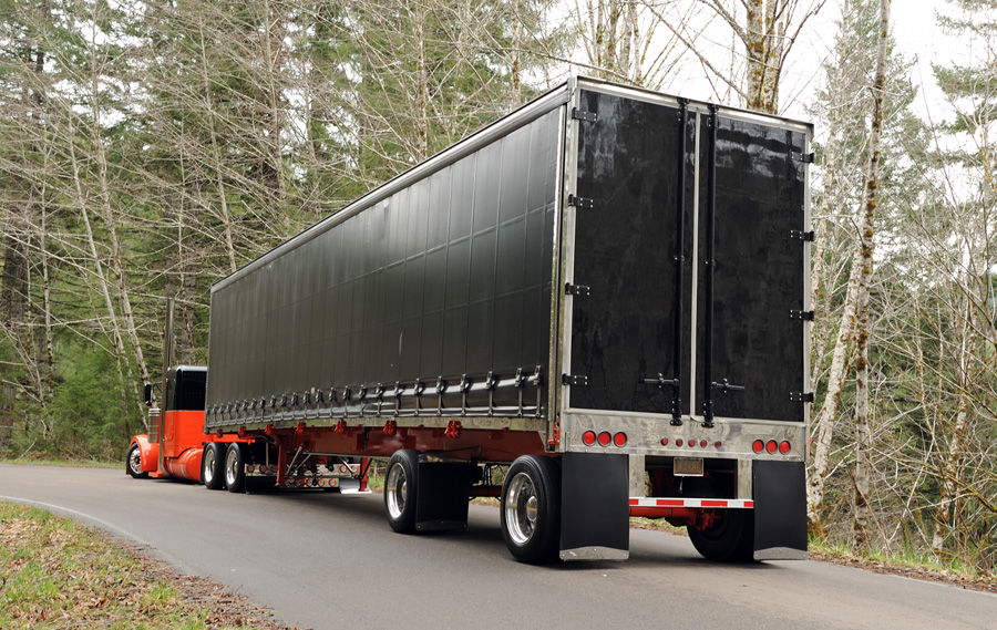 While the truck was being built, James went ahead and redid his 2000 Wilson curtain van as well. James had the frame rails and winches painted orange, painted the nose cone and rear doors black, powder coated all of the rear door hardware and polished out the wheels and most of the other exposed aluminum pieces.