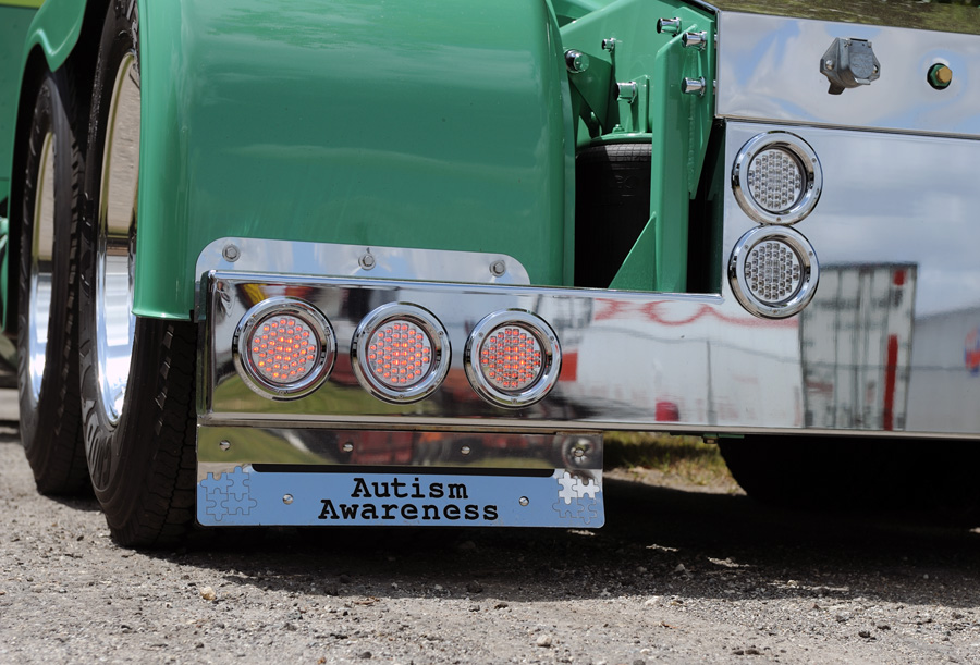The idea to “get the word out” about Autism came as an afterthought. Chris had the folks at Valley Chrome make him custom mud flap weights which included the words “Autism Awareness” and outlines of puzzle pieces, which is sort of a logo for the cause. The way Chris described the significance of the puzzle pieces was that autistic kids can’t put all the pieces of life’s puzzle together properly to live and function normally. Autism is a complex neurobiological disorder that impairs a person’s ability to communicate and relate to others. Today, the disorder, which has quickly yet quietly reached epidemic proportions, is more common than pediatric cancer, diabetes and AIDS combined. It is widely believed that genetics play a major role in causing autism, but there are many other theories, none of which have been scientifically proven – yet.