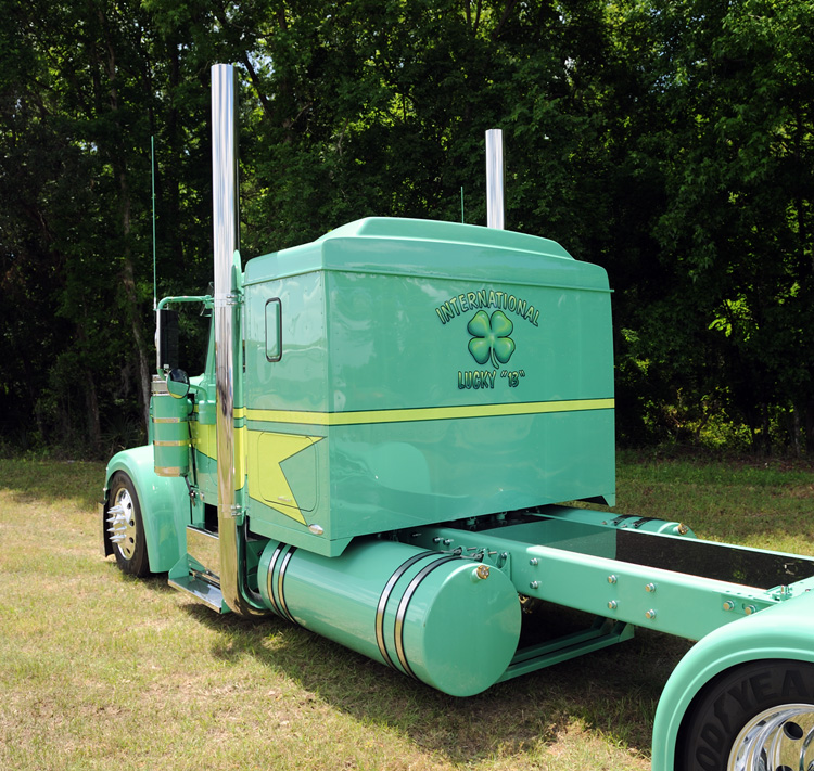After years of trying to convince the folks at International to let him build one of their trucks for promotion, Chris was finally given the green light last year. In recent years, International has set their sights on the owner operator market by offering trucks like the 9900ix and, now, the new LoneStar. As part of their unveiling celebration of the LoneStar at the truck show in Louisville last March, International thought it might be good to have a tricked-out 9900ix out there, too. This is how Lucky “13” finally came to be.