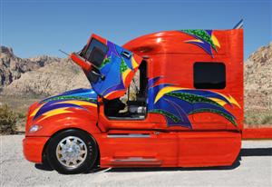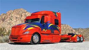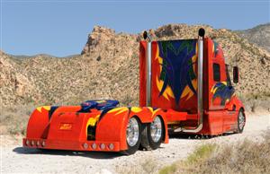 The truck took four months to build and made its debut at the Mid-America Trucking Show in Louisville, Kentucky in March of 2008. And it was very well received (even the Peterbilt and KW guys liked it). The truck was not entered into the competition in Kentucky, but instead was parked in the International area outside to help promote the unveiling of their new LoneStar truck.