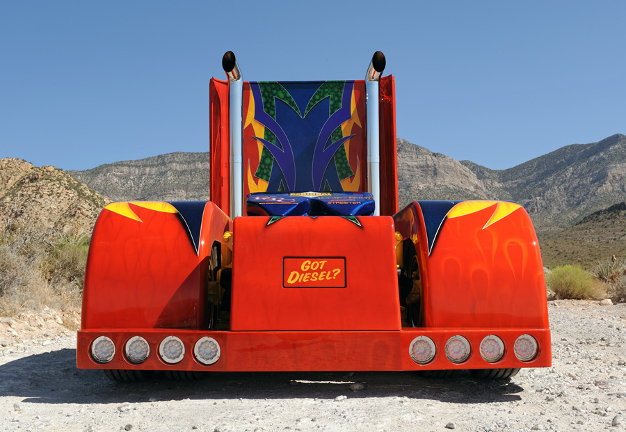 After Louisville, we convinced Jim to bring the rig out to the truck show in Las Vegas and enter it into the Pride & Polish contest where it received a 1st place in the Limited Mileage Paint Bobtail class, tied for 1st place in the Limited Mileage Interior class, and got 2nd overall in the Limited Mileage Bobtail class. Not bad for their first time competing! After the show, we took the truck to Red Rock Canyon just outside Las Vegas and took all the beautiful pictures you see here and on the cover/centerfold. Those New York boys won’t soon forget the picturesque scenery we saw out there in the desert that morning.