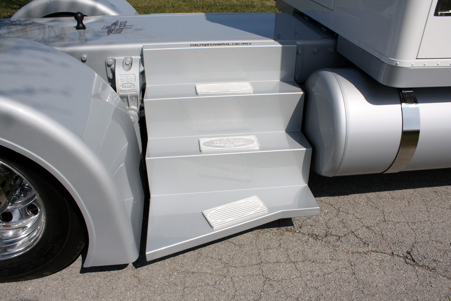 Big John now rides on a 2004 Peterbilt 330 chassis complete with air-ride, an Allison automatic transmission and a Caterpillar C-12 engine with 400 horsepower. The guys in the shop (the customizing shop at Peterbilt of Joplin is known as Truck Rods) hand-fabricated the front fenders, all four pieces of the louvered butterfly hood, lengthened and widened the original grille shell and hand-fabricated the rear steps, flush deck plate and one-off stainless steel light bar. Today, Big Bad John is a true work of art!