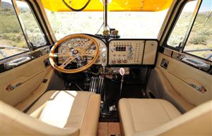 After the paint was completed, Ron’s friend Steve Ingram of Stitch’n by Steve did the interior in leather and tweed with wool carpeting. Steve built custom shelves and cabinets in the sleeper, installed a marble floor between the seats, added a sunroof and covered the dash with leather. He also made custom door panels with embroidery and billet aluminum pieces, installed custom knobs, and then hid all of the 1,500-watt stereo’s 14 speakers and four amps in various spaces throughout the cab and sleeper.