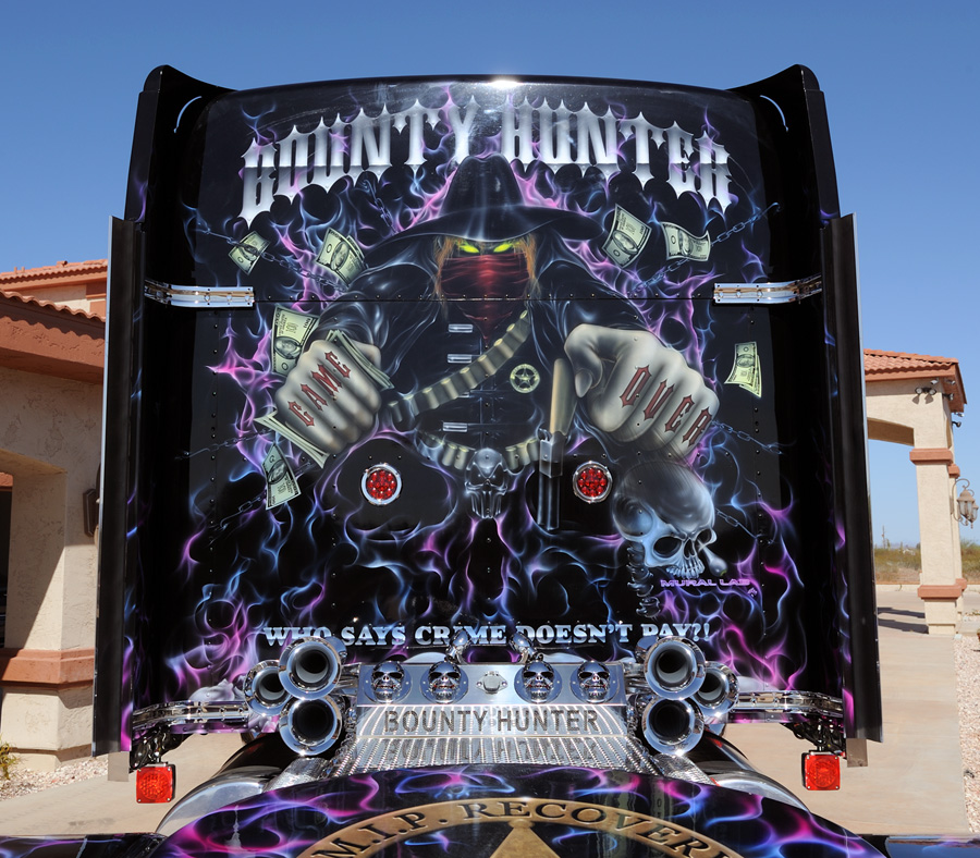 Jeff’s motto has always been, “Go big or go home!” and that attitude is evident in the many “big” things he does. But every big thing that Jeff dreams up, Tom has always been able to make a reality. And Crystal, well, she’s the glue that keeps everything together. And that is why these three young people have been able to accomplish so much so soon. So whether crime pays or not doesn’t really matter – what matters is that they work hard and that they work together – and when that happens, like it says across the knuckles of the insane-looking bounty hunter painted on the back of the truck’s sleeper, “GAME OVER!”