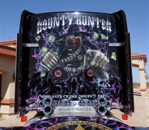 It’s been said that crime doesn’t pay, but for two young bounty hunters from Glendale, Arizona, it actually does – well, sort of. Longtime friends Jeff Suer (37) and Tom Trautman (41) are involved in many business ventures together, but they chose their “recovery” business as the theme for their outrageous “Bounty Hunter” big rig truck. Once an integral part of their operation, the truck has since been retired, tricked-out, and turned into a showpiece used just for fun. Coming from very different backgrounds and being almost exact opposites (Jeff is large and loud, while Tom is small and quiet), this modern-day odd couple, with help from Jeff’s wife Crystal, has succeeded in just about every endeavor they have attempted.