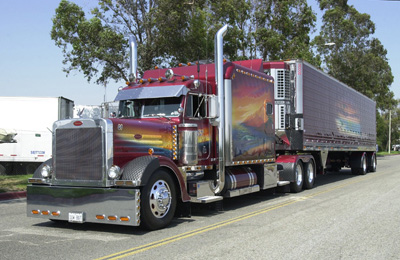 “Marooned” rig, a 1998 Pete 379 tractor-trailer which features a tropical