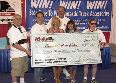 With temperatures scorching outside, it was great to be inside at the 2002 International Trucking Show in Las Vegas, Nevada on June 27-29 at the Las Vegas Convention Center. As usual, we at 10-4 had a lot of fun things going on in our booth. But this year, in addition to the fun, we also raised some money for charity.