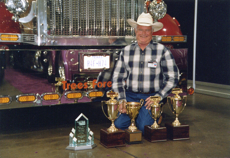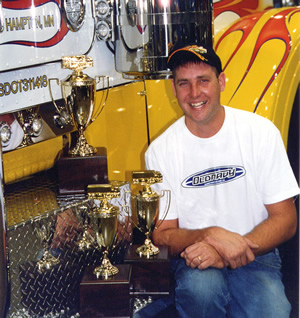 Stacey Dowdy, an owner operator with Floyd Trucking, dreamed of coming to GATS for over a year. Based out of Kirby, AR, he was entered in last year’s competition, but arrived too late to get parked. So he vowed to be on time this year. Of course he hadn’t counted on being a new daddy either – his wife gave birth to their first son less than a week before he was to head to Dallas. But Dowdy, who runs about 110,000 miles/year hauling sheet rock in Arkansas and the surrounding states, was determined to be on time. So he spent a little less time on the truck than he would have liked, and worked as hard as he could – and was rewarded with a 2nd place interior trophy for his efforts.