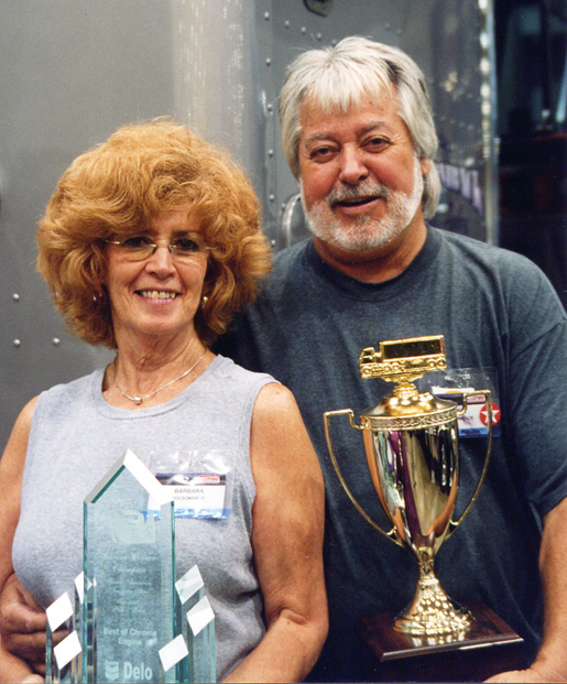 Whether the dreams are new or old, being recognized with an award is always sweet. Neal and Barbara Holsomback, long-time favorites in the truck show community, brought their gorgeous 1988 Peterbilt 379 “Plum Classy” out to play. With a brand-new stainless steel floor, loads of chrome and stainless and paint waxed to a glossy shine, the Holsombacks brought home three trophies – including special recognition from Peterbilt and Chevron DELO. Their engine alone was a real traffic stopper – an incredible assembly of chrome, paint and immaculate detail, prompting more than one passer-by to wonder if this truck actually went down the road to work every day! It sure does – as Holsomback puts on around 90,000 miles/year hauling carpet and airfreight around the South and Midwest – with an occasional trip to the West Coast for good measure.