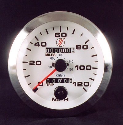 Known for their innovative, high-quality, American made accessories for big rig trucks, Double JJ Enterprises recently added a full line of back-lit gauges to their wide selection of products. High-tech and tough-as-nails, this line of gauges feature a low profile polished stainless-steel bezel that follows the curve of the scratch-resistant domed glass lens. In addition to the standard perimeter lighting, each number on the dial face is individually back-lit for maximum visibility at night. As illustrated by the five-inch speedometer pictured below, the entire line features black graphics on a white dial background with fire-orange pointers. The classic styling of these gauges adds elegance and functionality to most any truck dash. Other gauges that are available include tachometers, pyrometers, water and oil temperature and pressure, fuel, amp and volt meters, turbo boost, a dash-mounted clock and many more. These gauges look great, work well, and, like other Double JJ products, are easy to install and built to last. Double JJ is a company that believes in putting the customer first and strives for complete customer satisfaction. For almost ten years, Double JJ Enterprises has been manufacturing and selling high-end accessories for trucks. Back in 1994 they introduced their “J Lite” drop-down headlight brackets which featured a unique “classic” design and easy installation in the factory-drilled holes. Later, they added blinker bars, rear step light bars and billet aluminum hood ornament mounting bases to their product line. For a complete look at all of their products, visit your nearest truck stop or chrome shop. To find one their over 400 dealers throughout the U.S. and Canada, call Double JJ at (800) 948-2775 or go to www.doublejjenterprises.com. These cool back-lit gauges, as well as all of their other fine truck accessories, are sure to add style and class to your rig.