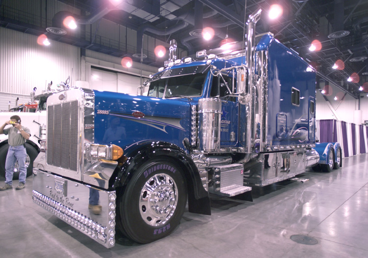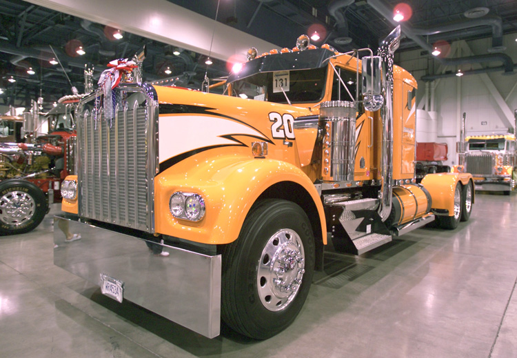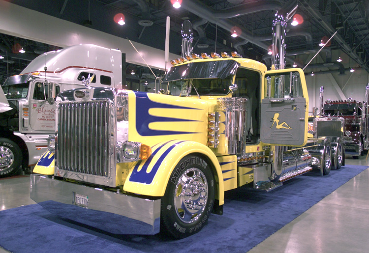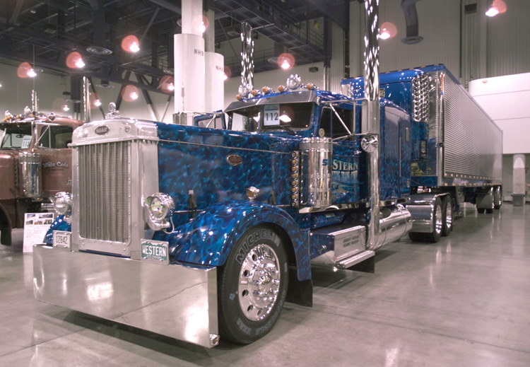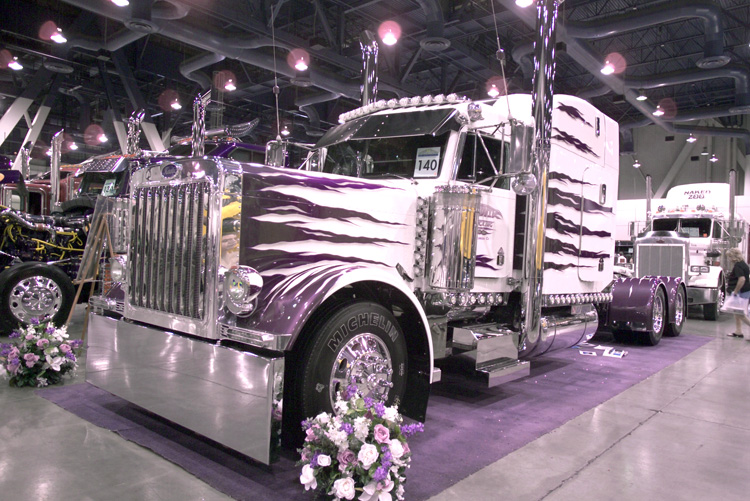 Not necessarily “transformed” but also making a good showing was Dean Pliaconis with his wildly-painted KW truck and Kentucky trailer combo, taking four 1st place trophies. Of course, no truck show would be complete without Rhett Butler Trucking’s muraled KW (our July 2002 cover truck) taking Best of Show Combo, as well as several other awards. Tony King and his 1986 Pete 359 did very well too, taking two first place wins and Best of Show Bobtail. Now if he could just keep a good hold on those trophies (he dropped two of them and had everyone worried sick when he went up to collect his Waterford Crystal vase for his Best of Show win). With all these past cover feature trucks winning so many classes, we just might have to start calling Vegas the “10-4 Magazine Cover Truck Reunion” show.