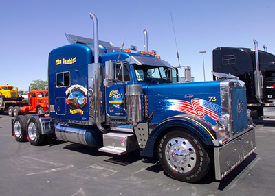 For the past 17 years, Hot August Nights has drawn record crowds to Reno to see the best hot rods and hear the best music from America’s best era - the 50s and 60s. It was said that the population of Reno triples during Hot August Nights. This year was no exception. Some 5,000 registered hot rods (and were sure twice as many that were not) took part in car events at different hotels and areas all over town. There were car auctions, beauty contests, nightly cruises down Virginia Avenue under the famous “Reno Arch” (that lasted for hours), live music, and more testosterone than you could shake a stick at. This event was so popular, the 5,000 slots for the 2004 show were already filled before the 2003 event came to a close. But as cool as the cars and music were, it was all just icing on the cake for the thousands of “truck nuts” that showed up to see America’s finest big rigs.