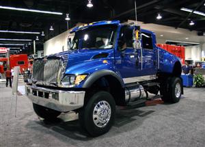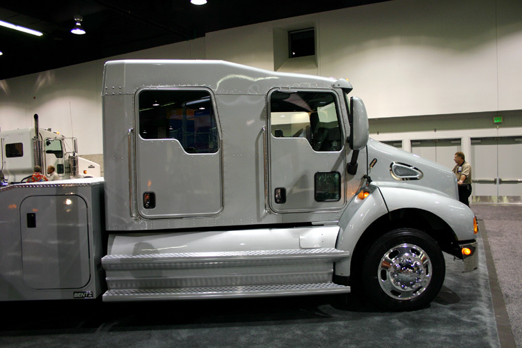 A couple vehicles that were generating a lot of talk on the show floor and creating rubber-necking in the aisles were two medium duty recreational-type trucks. The International 7300 CXT is a huge pickup truck born out of the proven International 7300 severe service truck used by professionals for the most rugged applications. Featuring a DT466 diesel engine, an air-ride cab and seats, a spacious and well-appointed interior, seating for six, and the capability to haul six tons, the 7300 CXT has all the attributes of a commercial truck, but you don’t need a commercial driver’s license to operate it. The other cool truck that was turning a lot of heads was a specially-built Kenworth T300 crew cab conversion by Bentz Transport Products. The Bentz conversion turns a standard KW T300 into a four-door model with seating for five. The truck on display at the show featured a back bench seat which pulled out into a sofa bed. Spec’d as a hauler and transporter, this rig is ideal for those who want to pull a large horse trailer or are looking for a stylish and tough transporter that makes a statement. Both of these vehicles are guaranteed to make Hummer drivers stare in awe as they roll by.