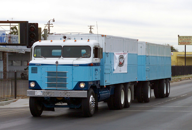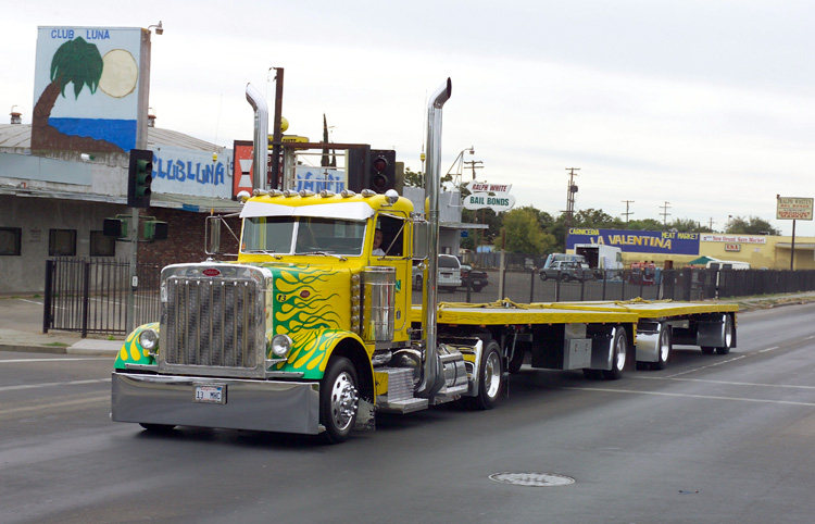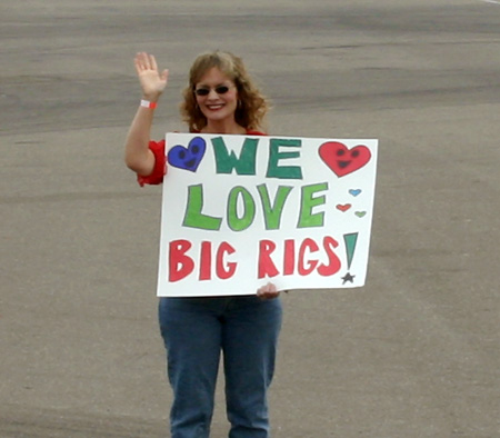 the rigs as they went by. The lead truck was Ed Rocha's incredible blue and