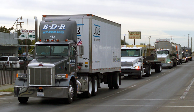 the trucks headed north on Highway 99, the convoy was a real spectacle and crowd-pleaser.
