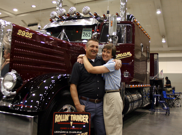 Leonard and Charlene Testerman picked up their second Best of Show Combo win in 2004. With their immaculate deep burgundy customized Peterbilt 359 with a Double Eagle sleeper, pulling a Reitnouer stepdeck trailer, they were thrilled to receive top honors – especially since their daughter and son-in-law were able to be present to share their success. “We live less than an hour from here,” explained Leonard. “It’s really nice to do well in your own home town.”