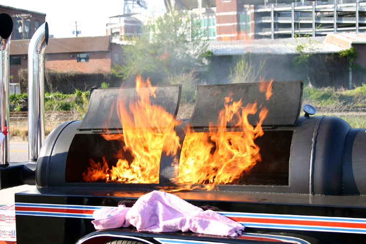 Before the trucks moved inside the Convention Center hall, participants, their families and friends came together to share stories and a barbecue from the custom-built grill of competitors John & Kay Ray of Eastaboga, AL. With stacks billowing smoke and a surface big enough to cook for 50 at a time, John flipped burgers and dogs for the hungry crowd. John’s truck and trailer (a 1999 Mocha Pearl Peterbilt 379 pulling a 1994 Utility reefer trailer) are also crowd-pleasers, with unique stainless-wrapped top and bottom rails on the trailer, custom light bars and boxes, and an overall clean look that makes folks everywhere sit up and take notice.