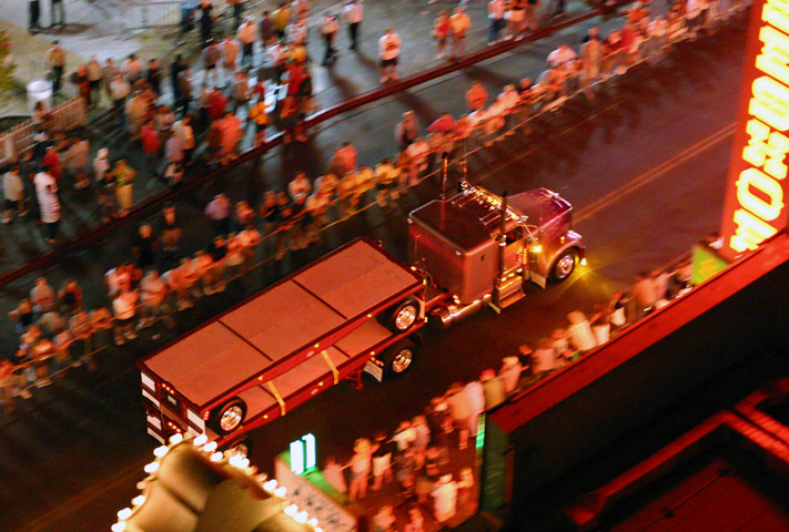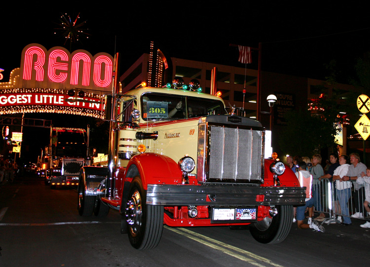 As it did last year, Truckerfest shared the spotlight in Reno with Hot August Nights - an annual event celebrating the cars and music of the 50s and 60s. And as spectacular as the hot rods were, we think the large cars still stood them up. Friday night and Saturday night featured big rigs parading through the center of town, down Virginia Avenue under the famous Reno Arch, until well after midnight. Last year, truckers were told to be quiet (which was not well-received), but this year they were given the green light to make some noise. Unfortunately, some took it a little too far and, quite frankly, may have ruined it for next year.
