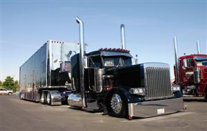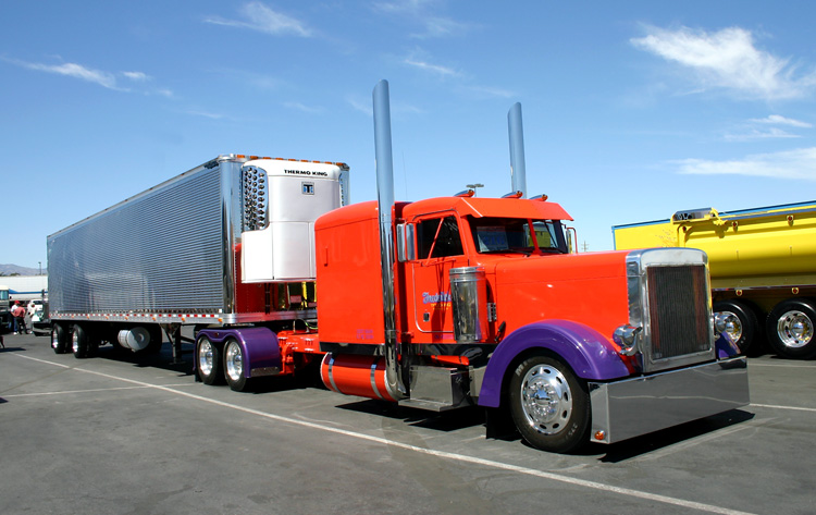 WORKING (COMBO): 1st Maggini & Son Trucking/Mike Maggini – 1998 Yellow & Green Peterbilt 379/2002 Utility Flatbed Trailer; 2nd Trevin Frederiksen – 1987 Orange & Purple Peterbilt 379/2005 Great Dane Reefer; 3rd Klassic Rock, Inc./Floyd & Shay Johnson – 2005 Flame Red Pearl Metallic Peterbilt 379/2005 Reliance Transfer Dump; 4th Corey & Hilary Wardlaw – 1993 Yellow Kenworth W900L/2004 Reliance Transfer Dump; 5th Western Distributing/Rick Walker – 1953 Blu-ish Peterbilt/2004 Competition Auto Transporter.