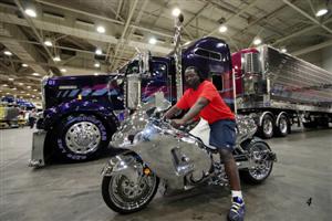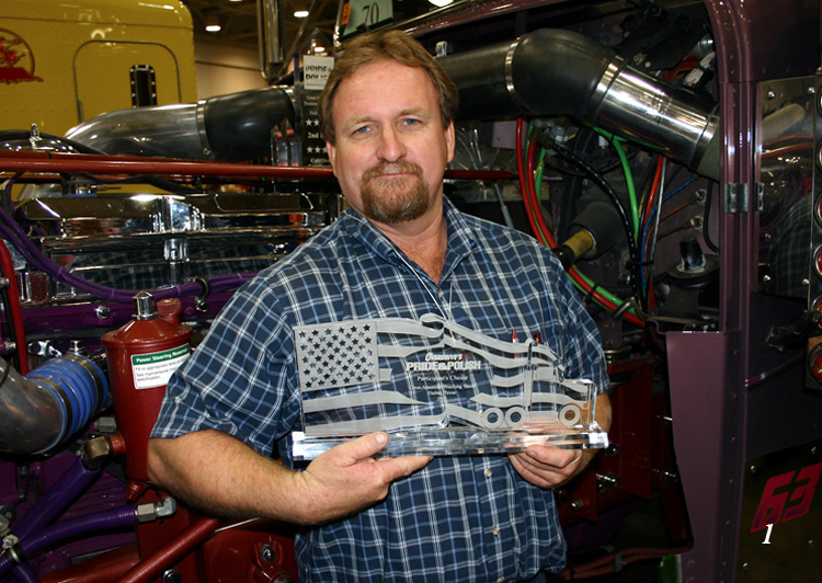 Entertainment is always hot at GATS, and this year was no exception. In addition to offering autograph opportunities with rising country music stars Bobby Pinson, Carolyn Dawn Johnson and Shelly Fairchild, two nights of concerts had attendees standing in long lines waiting for free tickets to see Terri Clark and Sammy Kershaw. Out in the truck parking lot, truck driving singer GM Paterson entertained nightly. But the biggest excitement on the show floor was, as always, the collection of gorgeous, gleaming trucks participating in GATS’ 7th Annual Pride & Polish competition. Recent cover truck owner Mark Pounds brought two awesome rides – his 2001 Freightliner XL132 bobtail and his brother’s 1987 purple flamed Freightliner Cabover pulling a 1998 Utility Flatbed. Pounds (photo 1) was the recipient of one of the most coveted awards – Participants’ Choice – voted on by the other competitors. New competitors came to enjoy a little Texas hospitality and dream of bringing home a trophy or two. Richard Harper made the trip from Jackson, MS with his 1994 Kenworth W900 Ltd. Edition (#27 out of only 200 produced) and 1996 Utility reefer, as well as his “chrome” motorcycle (photo 4). Harper’s truck and trailer have been customized from front to back, top to bottom. His truck, which has a 550 Cat under the hood with a 15-speed Eaton transmission and 3.36 rears, had roughly 121,000 miles on its new motor – which he had installed in January 2005 after the old one racked up over 1 million miles. His cab sports enough chrome and stainless to be blinding – including ceiling and cab floor. The sleeper floor is marble, and he completely re-did the stock interior, replacing all the fabric on the seats, bunk and curtains with real Gucci fabric, imported from Hong Kong. Truly techno-savvy, Harper, who hauls chicken and produce between Mississippi and California, has his truck and trailer hooked up to a satellite in such a way that he can turn his reefer on and off via his cell phone. Everything operates on remote control – including the stereo, two flat screen TVs and his hood, which raises and lowers on hydraulics. Harper brought home two trophies for his show debut! Familiar faces on the truck show circuit this year, Tommy & Kim Turner brought home their fourth Best of Show win in 2005. The pair, whose 1995 Peterbilt 379 pulls a 2003 Transcraft stepdeck and is called “El Dorado” (photo 2), are leased to Southern Pride, hauling jet motors all over the United States. They expect to rack up well over 225,000 miles this year – in addition to participating in truck shows.