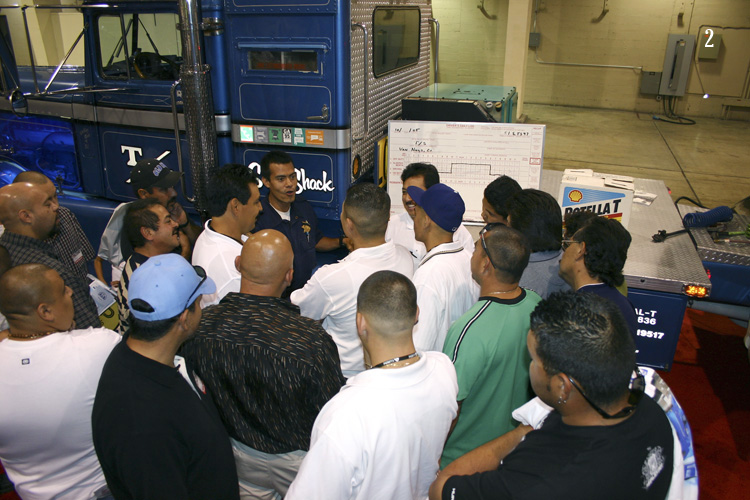 The show floor was a little quiet during much of the event (except Saturday), but there were some exciting things going on. On our end of the building, 10-4's "secret" margarita bar (thanks Jay) was a big hit with fellow vendors and attendees alike, and on the other end of the building, R.J. Taylor and Ol' Blue, with the help of several CHP officers, put on fun and informative safety seminars for huge crowds about logbooks, hours of service and other hot topics. Attendees were allowed to address questions directly to the officers and get the answers they needed to run legal (photo 2). R.J. wanted to thank all of the officers that helped, including Esther Hensen, Luis Parada, Chris Sahagun, Todd Irvin, Frank Sansone Jr, Chris Regan, Dave English and Cullen Sisskind. Nobody puts on a better safety presentation than R.J. Taylor. He's the original and still the best!