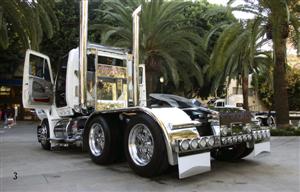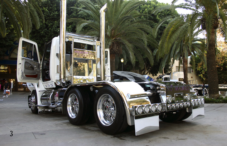 LATINO EXTRAVAGANZA "Extravaganza" may be a bit of an exaggeration, but the first annual Truck Show Latino, held October 13-15 at the Fairplex in Pomona, CA was pretty good for a first-time event. Although the show's promoters (the same group of folks that put on The Truck Show Las Vegas) had tried to fill two buildings, they fell short of the mark and instead filled one. Building #4 at the fairgrounds had about 125 vendors, and some even spoke Spanish! Promoted as the first-ever event of its kind, Truck Show Latino was created to give Latino's in the trucking industry a place where they could feel "comfortable and welcome" and do some business. Research had shown that other truck shows weren't filling this need, so Independent Trade Show Management, in conjunction with Newport Communications, produced the event. Originally, a Stars & Stripes Truck Beauty Competition was scheduled to be held just outside, but some last-minute concerns about space and a poor turnout, forced the "competition" to become a mere "exhibition" of nine (very nice) trucks.