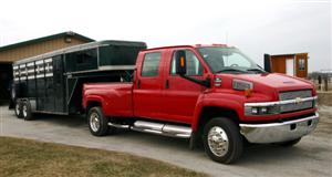KODIAK As most of you step out of the big rig you use to make your living, many of you step into, well... another truck. Large and super-sized pickups are growing in popularity as the vehicles of choice for everyone from movie stars to ordinary folk. In spite of rising fuel prices, dealers report sales of less-than-fuel-conservative vehicles are going strong. And in an increasing niche market, big, big, big pickups are attracting more than just increased visibility – they’re attracting buyers. I had the opportunity to test drive the Chevy Kodiak, enhanced by Monroe Truck Equipment. It started as a medium duty truck chassis – a C4500 to be exact – with an oversized crew cab. Monroe added a jumbo truck bed and turned it into a dually with features including chrome and polished aluminum to make it something special. From air-ride leather seats to a switch-activated fold-down rear bench seat, to that ubiquitous DVD player to entertain kids in the back, this vehicle was designed to be more than a fancy grocery-getter. Under the hood, a Duramax 6600 V-8 diesel engine and Allison transmission provided more than ample power. We hooked up a 4-horse gooseneck livestock trailer and took it away for a weekend. This was easy to do because the Kodiak has a neat feature that many of you have on your big trucks – a dump valve to lower the rear suspension to get into position under the trailer. Mission accomplished. We loaded four horses, tack, feed and all the essentials and got ready to roll. Turned on the lights and voila! What an awesome looking combination (although we probably should have color-coordinated the trailer)! But looks aren’t everything – this truck had plenty of get-up-and-go as well. In fact, unless we checked the mirrors, we didn’t even know the trailer was back there. The pulling power was that good. I would have liked to have conveniently located grab handles to climb in and out of the cab – it sits much higher off the ground than any ordinary pickup – in fact it’s somewhere between a full-size pickup and semi-sized. The truck rode smoothly on the highway – it is certainly designed to pull a load. And the built-in engine brake feature was fantastic. As strong as the engine brake on a semi – it will pull you down to a complete stop if you let it. One large distraction as we rode along was the road noise. This pickup needs more insulation – a blanket under the hood and in other strategic locations would make a positive difference. Great weekend, back home again, everything unloaded and I was ready for another road trip – next stop Louisville, KY for the Mid-America Trucking Show. This time, no trailer. We loaded boxes, bags and other essential stuff in the bed, in the cab and still had abundant room to spare. Without a trailer, road bumps are significantly more evident. The suspension is very stiff, even with air-ride seats, air bags under the bed and new shocks. But where the highway is good and smooth, the ride feels great – and the miles melted away as we got closer to our destination. Everywhere this big truck goes, it draws admiring glances. It looks great – and making a pit stop includes having to answer a host of questions from curious truckers and 4-wheelers alike. Eyes light up like Christmas morning at the sight of a huge package in fancy paper just waiting to be unwrapped. The chrome fuel doors don’t want to stay closed – the latch mechanism seems to be faulty – a small thing, but irritating as it wouldn’t stay shut as we headed down the road. Removing all the stuff from the back of this truck seemed to go on forever – we unloaded, unloaded, and then unloaded some more. What seemed to take up only a small amount of space in the truck was really a mountain of boxes, bags, luggage and supplies – this truck is truly built to haul. We loaded the Kodiak up with people and took a ride. The bench seat in the back is firm – too firm for real comfort. And without the weight of a loaded trailer or a load in the bed, the ride is just plain jarring. I sat in the sun, admiring the looks of the truck – chrome wheels with custom hubcaps and nut covers, polished diamond plate fairings that run the length of the cab, and a shiny “look at me” red paint job. But as I looked closer I noticed the cab and the bed were slightly different shades. The cab was painted at the factory, the bed aftermarket. At the show’s end, we made our way home once again. I felt a little disappointed in the truck but decided to give it one more test drive before it was returned. We hooked it up to a 2-horse bumper pull trailer, loaded up two horses and all the necessary related equipment, and went on down the road. And, once again, the truck’s ride improved tremendously. So, the bottom line for me is... this is a terrific truck when used for its intended purpose – pulling a loaded trailer, or under a heavy load. It is not intended for short trips to the grocery store or running through the drive-up at your neighborhood Taco Bell. If a great looking truck that has plenty of stamina and pulling power is what you’re looking for, this is absolutely a ride to consider. Copyright ©