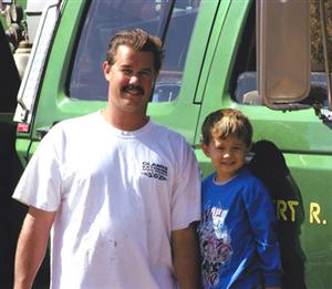trying to keep little Matthew happy while he sat in his red Peterbilt