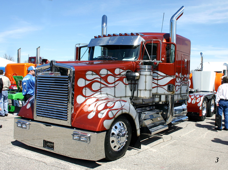 orange 1999 Freightliner Classic XL; 2nd Ron Baird, Thornton, IN - green