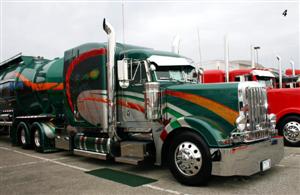 his spectacular green 2000 Peterbilt 379 and Heil tanker (photo 4). Muralled