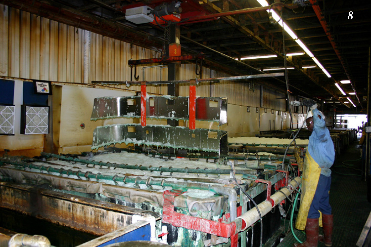 the bumper is finally placed in the plating tanks (there are a lot tanks
