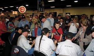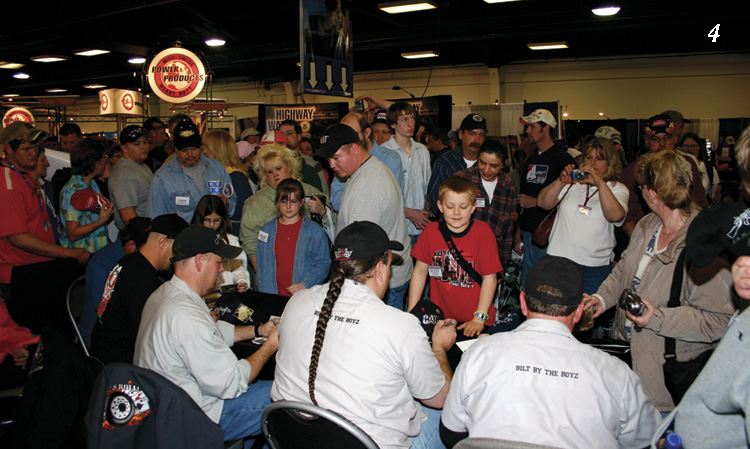 Just down the aisle from Peterbilt, International unveiled their all new ProStar, which is replacing the 9400 later this year (photo 9). After five years and $300 million in development, this all-new truck was designed to provide better fuel economy, driver satisfaction, unprecedented uptime and the lowest cost of ownership. The ProStar was designed to be easy to maintain. Many items on the truck can be serviced without any tools, and the four-piece front bumper tilts forward to allow easy “walk in” access to the engine compartment. Much of this truck and its innovative features were designed from input by owner operators. To learn more about the ProStar, visit www.internationaldelivers.com. On Thursday night, we at 10-4 had the opportunity to spend time with some of our “people” that we don’t see very often. We headed south out of town and ended up at Rio’s Steakhouse, where we enjoyed a good meal with Clint Moore, his wife Cris, his father Dave and friend Jim Crain. Also with us were some of our writers, including Penny Towner, Troy Miller and his father Joe and Ken Skaggs. Frank and Dianna Pangburn, promoters of an annual charity truck drag event in California, were also there. What a great time we had. We’d like to thank these folks for all the hard work they do for us and for carving out some time to spend with us while in Louisville. If it was music and fun that you were looking for, you could find it at MATS. Thursday night, Speedco hosted the “Tribute to the American Trucker” and unveiled a custom chopper built by Orange County Choppers (OCC). With special guests Paul Sr. and Mikey Teutul from OCC and a private concert performed by the Road Hammers, the benefit event raised $100,000 for the Make-A-Wish Foundation. Friday night, Western Star hosted a “Casino Night” party and, again, the Road Hammers rocked the house. Upon entry, each person was given $50 to gamble with. If you won enough money, you could purchase Western Star stuff. 10-4’s own Erik Sieben took his $50 to a craps table and in less than an hour had $10,000! Too bad it wasn’t “real” money, but it was still fun. Friday night also featured a concert by George Thorogood & The Destroyers, presented by Kenworth at Freedom Hall. From what we were told, it was a great show. Saturday night, alternative rockers Nickelback and Chevelle raised the roof to thousands of screaming fans.