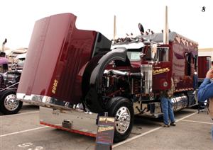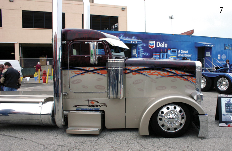 It might sound like all the action was happening inside the show, but the real action was outside, where about 150 trucks showed up to compete in the 6th Annual Paul K. Young Memorial Truck Beauty Championship and the 2nd Annual Big-Rig Build-Off. There were a lot of old favorites and many newcomers as well. Some Mid-America veterans that did very well included Russ & Debbie Brown, Clint Dicks, Tommy & Kim Turner and Darian Stephens. Clint and Darian usually compete in the bobtail classes, but this year they both added a trailer and did very well as combinations. Harvey & Karen Zander cleaned house with their “Icy Blu 2” International, taking Best of Show Bobtail and six other trophies, while Leonard & Charlene Testerman’s Pete 359 “Rollin’ Thunder” (photo 8) took several top honors, including Best of Show Combination.